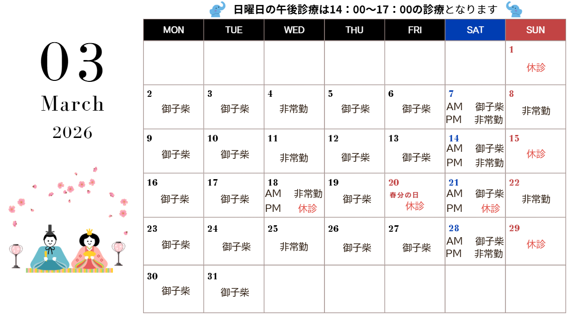New!<3月>診療のご案内
